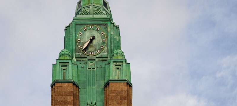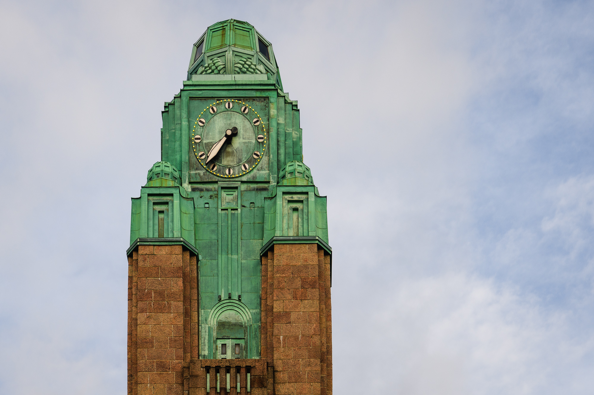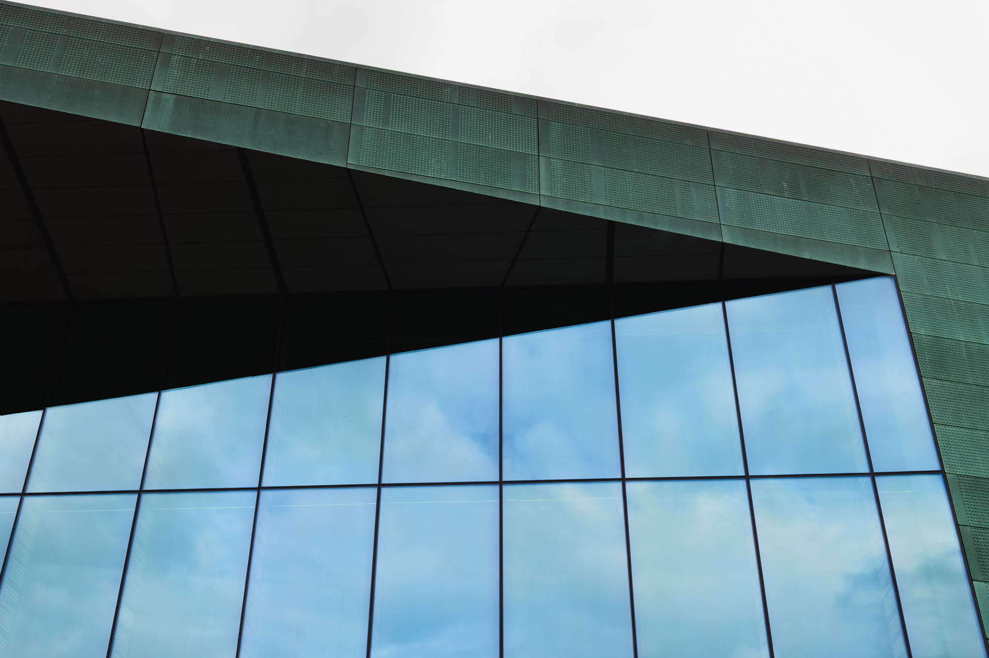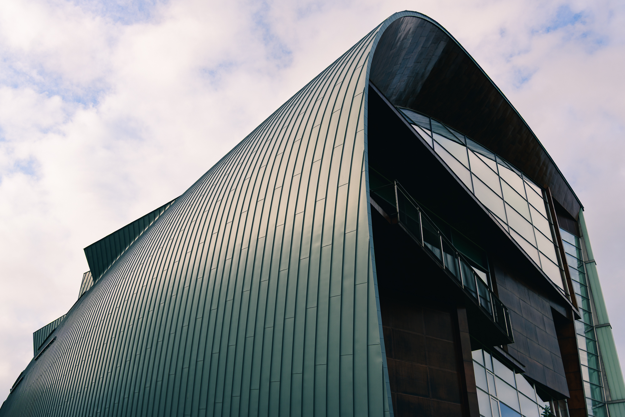 Helsinki Music Centre (Musiikkitalo) with green copper façade and glass frontage in central Helsinki.
